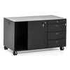 черная металлическая рамка в столешнице, кабель-канал в опоре стола и опорной тумбе