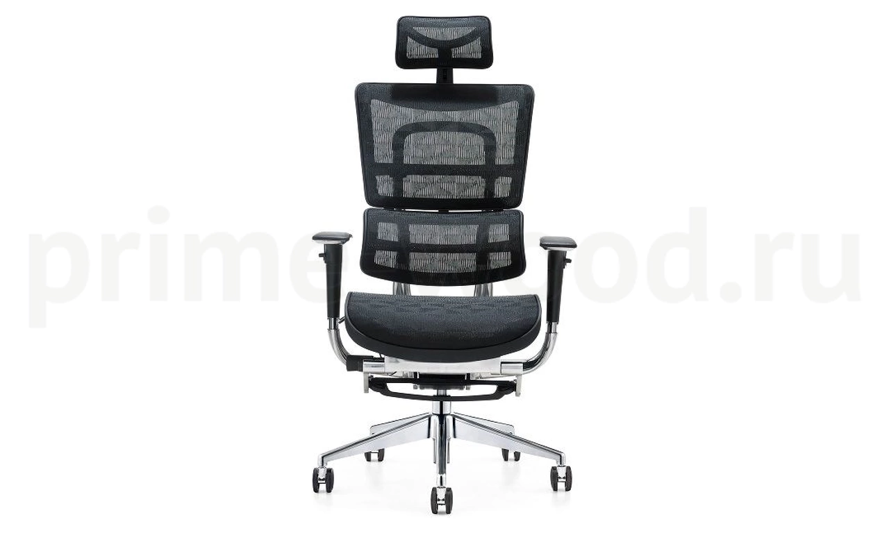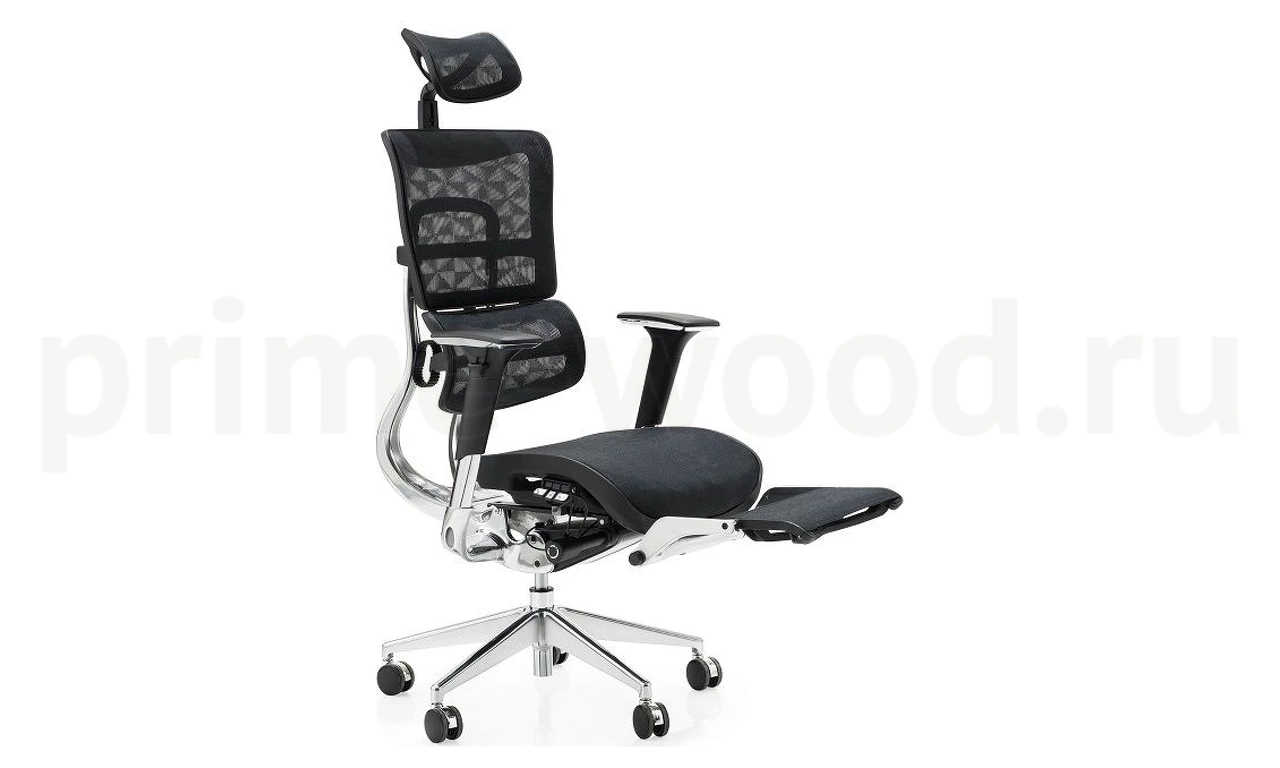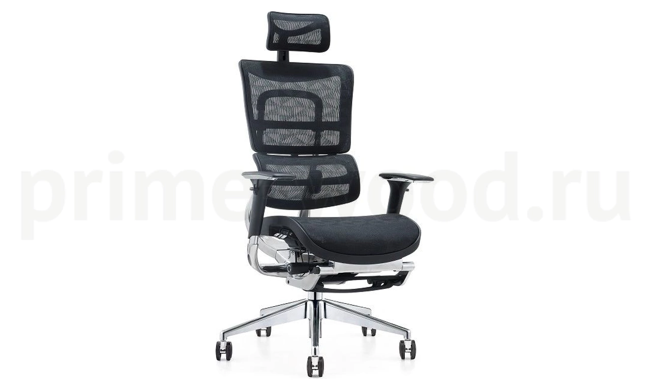 Эргономичное кресло руководителя Эрго с сетчатой спинкой, подголовником, подножкой для отдыха и множеством регулировок обеспечит комфортную и эффективную работу.