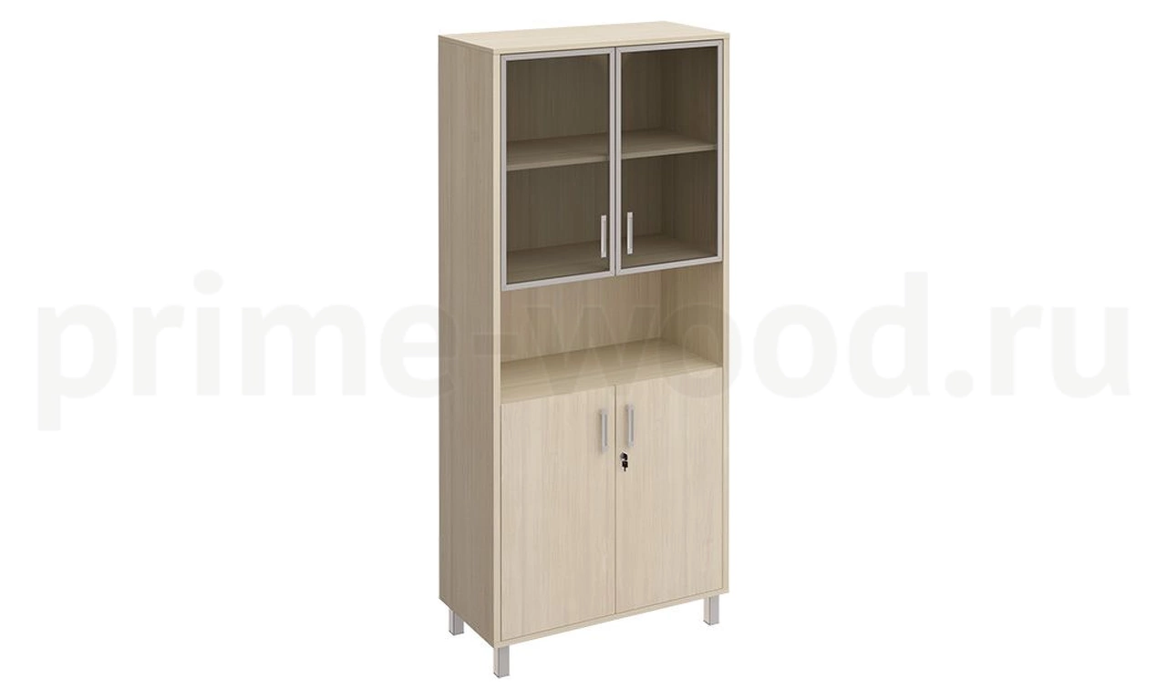 Шкаф для документов двери стеклянные в алюминиевой рамке + ДСП с замком + ниша БОРН 90x45x208