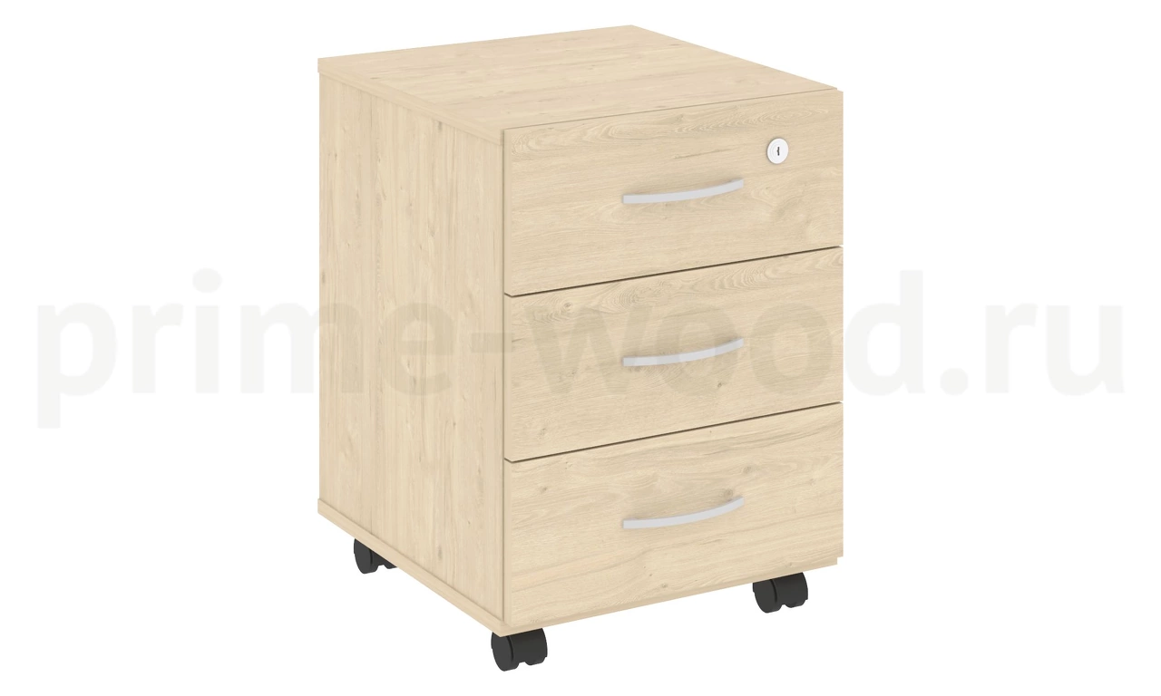 Тумба подкатная состоит из трёх отделений. Выкатные ящики работают безупречно благодаря качественной, надёжной фурнитуре. Направляющие устойчивы к поломкам. Ручки – алюминиевые. Перемещается на колёсиках. Торцы отделаны ПВХ-плёнкой. Размеры: 41.2х45х55,6 см. Тумба подкатная подходит к столу письменному В.СП-1